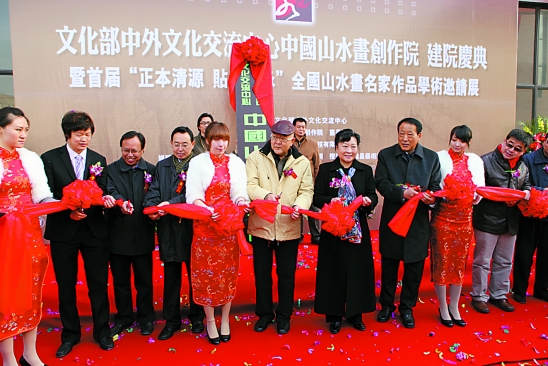 文化部副部长赵少华等领导为首届“正本清源、贴近文脉”中国山水画名家作品学术邀请展剪彩