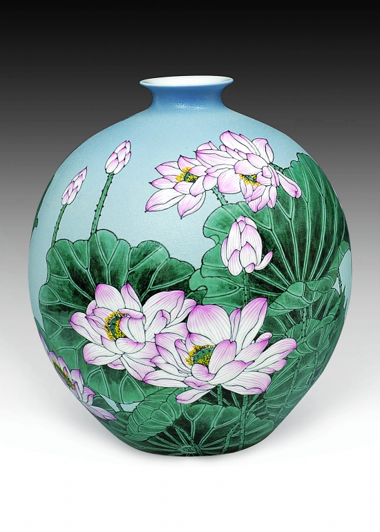 宁勤征 高温颜色釉综合装饰《清风十里闻荷香》瓷瓶
