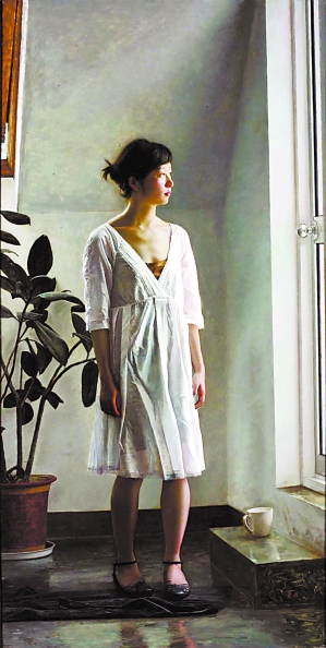 因此,当我作画时,笔触成为我心思与外部世界的相互呢喃,在柔和、平缓与层层相叠的笔触交织中,我希望能够渗入到事物的表象之下,我用笔触在组构事物的同时也仿佛同样在组构着自身的内在结构,我并不满足于由视像所带来的感受,而更期待通过多次的视觉关照而引起的直觉整体感来理解事物,这一理解并不仅限于对个别性结构的把握,而更是在寻找某种暗藏于所有表象之下的彼此关联。 所以,在我的画面中,并不存在真正的主题,更没有所谓的画面主角,人、物、空间处于同样重要或不重要的位置,我对某个角落的墙微光以及桌边翻卷台布的关注从不逊色于对人物的表现兴趣,毋宁说,我的绘画是对于所有存在物的展现,这些存在物并不以它们在人之认识中的卑微而缺乏魅力,恰恰相反,它们无时无刻在以其莫不作声而泄露出世界存在的密码。我希望我用轻柔的笔刷虔诚地叩响事物的表层,而试图去叩开我的心灵之门,与表层之下的那分真是有所接触。对一个写实画家来说,没有比此种满怀敬意将物之真实带上前来的虔诚摹绘更令人沉醉和期待了。