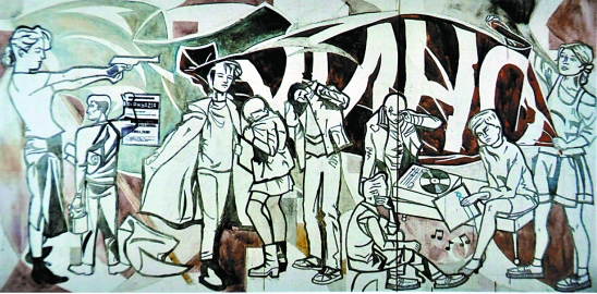 全体欢乐之二 布面丙烯和铅笔 2001年