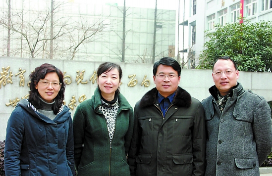 左起:副校长孙碧云、党支部书记李小枫、校长朱孝进、副校长陈积粮。