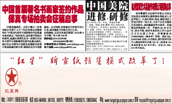 中国首届著名书画家签约作品 保真专场拍卖会征稿启事