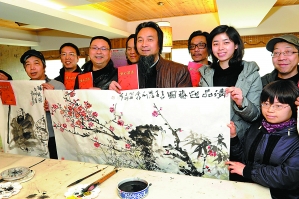 据了解,杭州兰亭画院得知省残疾人福利基金会举办爱心作画义卖活动后,秉着“以艺术奉献爱心”的理念,画院院长金晓海立即发动画院画师参加这一爱心活动,得到大家的响应。