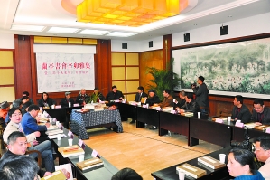 本报绍兴讯 邵馨 农历三月初三,山阴道上天朗气清,惠风和畅,“兰亭书会辛卯雅集”在书法圣地兰亭举行。本次雅集推出了:“2011兰亭书会书法年展”、“《郭子美篆刻》首发仪式”、“兰亭书会论坛”等系列活动。兰亭书会会长谢有才,兰亭书会老会员、顾问郭子美,副会长王伟、许绍满、商力戈,秘书长倪七一,副秘书长谢权熠、喻革良以及郭仲禄、钦桂林、阮继良、章钰、朱勇方、洪朝阳、汪灿根等兰亭书会20多位会员参加了本次雅集活动。此次雅集活动中推出的“2011兰亭书会书法年展”汇集了兰亭书会老、中、青三代近40件作品。兰亭书会成立至今已有29年,会员人数却不到50人,这种情况在现在的社团发展来看似乎显得那么不合时宜,而正是这种不盲目“扩编”,确保了兰亭书会29年来打造精英社团、秉承学术与操作并重的建会宗旨。入会要求必须是中国书协会员,在学术与创作上有优秀成绩者。通过展览可以窥视到这些作品传统功底深厚,又具有不同的个人面貌,展览推出当天就吸引了数百名书法爱好者前来观看。4月5日,在“《郭子美篆刻》首发仪式”上,郭先生一大早就来到现场,听取广大会员的意见。89岁高龄的兰亭书会老会员郭子美是绍兴市首任书协主席,是绍兴最早加入中国书法家协会和西泠印社的艺术家。年轻时期就被黄宾虹、潘天寿等所器重。在首发仪式上,谢有才会长高度赞扬了郭子美先生在诗、书、画、印四个方面都取得了让人钦佩的成就,鼓励年轻会员要向老一辈学习在创作与学术上甘于寂寞的精神。首发式上,郭子美先生还向兰亭书会捐赠了自己的作品集。本次雅集中的“兰亭书会论坛”围绕工作展开,大家纷纷畅所欲言。副会长王伟主持论坛,他讲到:“兰亭书会每年基本举办一两次有学术分量的活动,继2009年的‘兰亭书会论坛’和2010年的‘兰亭书会春日雅集’后又推出本次辛卯雅集,意在加强交流,加深友谊,为迎接兰亭书会成立30周年做好庆祝和纪念准备。”秘书长倪七一就目前兰亭书会的运作情况向大会作了介绍,并就展览策划、会刊编印等作了说明。