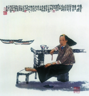 去年6月,梁平波、张华胜、张卫民、张谷良一同走进福建省泉州市惠安县,深入了解惠安的文化背景,切身感受惠安女的生活习俗和劳动场景,创作了大量写生作品,生动地展现了即将流逝的文化风情。采风期间,4人正巧遇到当地欢度端午节,很多惠安女盛装出行,因此画家们捕捉到了更多的写生素材和人文景象。他们在写生稿的基础上加工创作,用一幅幅作品诠释了一代又一代惠安女的柔情和刚强。梁平波认为,从人文视角来看,惠安女是一群“嫁给了大海的女子“,她们身上有着平常人难以企及的刚毅,她们是一个个不可复制的传奇。特别值得一提的是,张华胜为此次展览作品追加的一段段小文字,讲述了创作中的不同瞬间,细细品读,似有娓娓的海风在耳边轻轻拂过。