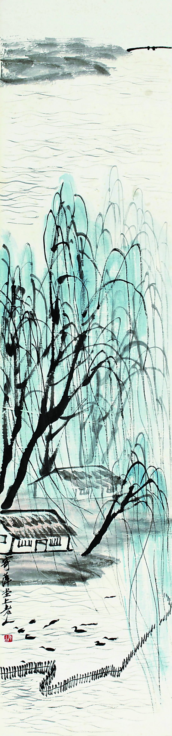齐白石 山水 镜片 设色纸本 139×30cm RMB:3,800,000-8,000,000 著录于天津人民美术出版社出版的《齐白石绘画作品集》2006年7月出版