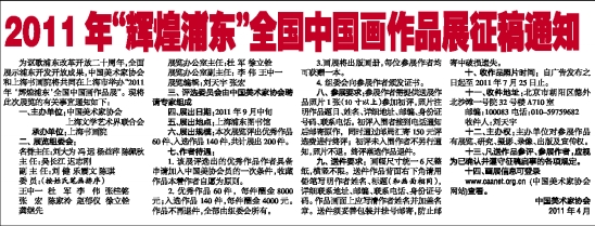 2011年“辉煌浦东”全国中国画作品展征稿通知