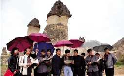采风团艺术家们在土耳其泽尔维冒雨写生