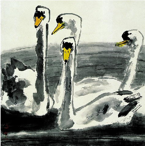 陆国强 天鹅湖 68×68cm 设色纸本 2008年