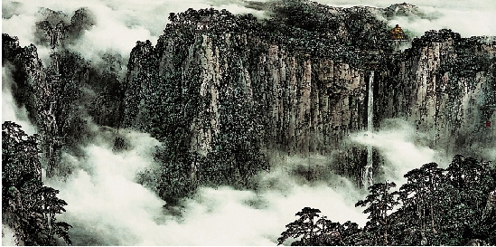 王利华 烟云润秀雪窦山 123×245cm 2007年