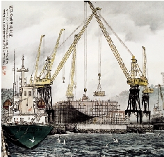 王利华 湖头渡万吨轮工地 84×84cm 2001年