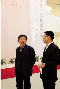 中国美术馆馆长范迪安与策展人余根晖在楹联展现场