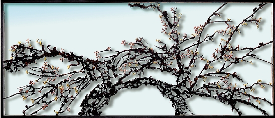 禅梅 熔铜大写意镂空壁画 作者 朱军岷
