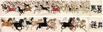 与徐悲鸿同时代知名爱国画家沈逸千之子沈其昭作品《万马奔腾图》近日呈现北京世纪嘉宝22日艺术品拍卖场。巨幅国画《百马图》是沈其昭闭门4月创作而出,生动逼真,神态各异。程十发生前欣然挥笔为之题词:“万马奔腾”。其笔下的马气势磅礴,不同凡响。 (永侠)