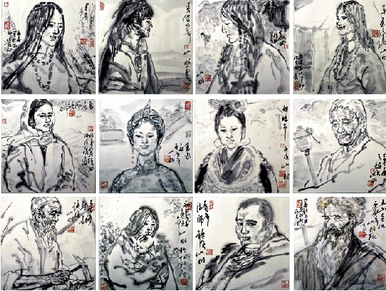 吴山明 人物写生 镜框 34×34cm×12幅 估价:250000-300000