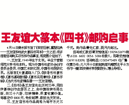4月16日美术报刊登了《恢宏巨制,重塑经典——王友谊和他的大篆四书写本》一文之后,很多读者咨询购买该书和作品事宜,现简要介绍如下: