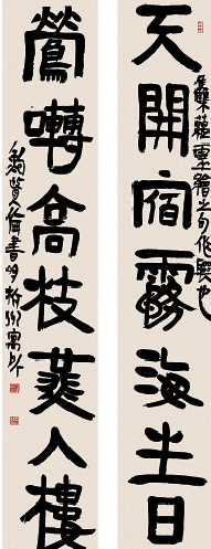 鲍贤伦 天开莺啭七言联 书法 22×138cm