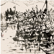 夏惠瑛 游艇会 国画 44×46cm
