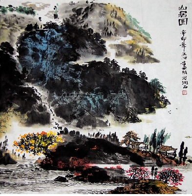 童世明 山居图 68×68cm
