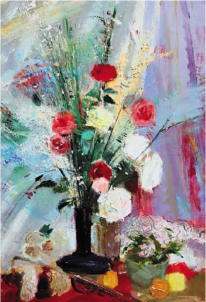 侯传岫 花与向日葵 90×60cm