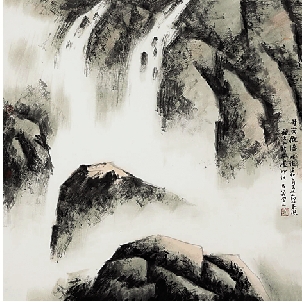 沈民义 井冈观瀑 国画 68×68cm