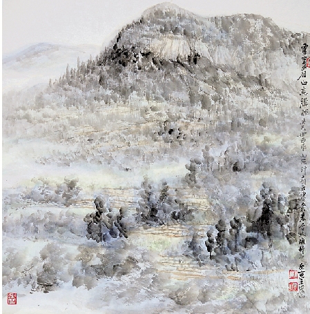 王界山 雾里看山意朦胧 67×67cm 2010年