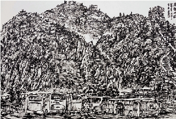 王界山 居庸关前客车多 28.5×42cm 2010年