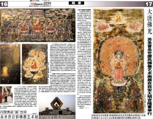 此幅“千手千眼观音”图像严格依据相关经典及仪轨绘制,法度严密。使用矿物及宝石颜色,色泽鲜艳。艺术风格本着“回归唐宋”遵循传统的精神,历时一年半载,可谓近百年来宗教绘画中不可多得的作品。