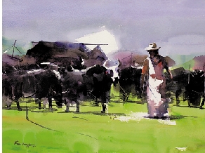 范邦菁 高原阳光 54×79cm 水彩粉画