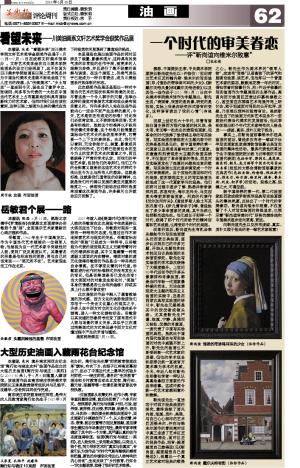 据悉,中国美协主席、中央美术学院原院长靳尚谊先生以3件临仿17世纪荷兰艺术巨匠约翰内斯·维米尔的写实油画(即:《惶恐的带珍珠耳环的少女》、《新戴尔夫特风景》和《戴尔夫特老街》)以及其他一些作品于2011 年6月11日在中央美术学院美术馆作为专题展出。靳先生说:“表面看,我画的是肖像,研究的是技法,实际上我是在研究形式语言的变化,这种语言表达了我的心情”(郑晓芬)。