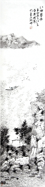 李国传 江烟暮舟 34×137cm