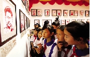 | “双百”人物剪纸作品喜迎建党90周年 6月30日,江西瑞昌市的小学生在观看“双百”人物剪纸作品展的作品《方志敏》。 当日,江西瑞昌26名民间剪纸艺人经过20天时间精心创作的“100位为新中国成立作出突出贡献的英雄模范人物和100位新中国成立以来感动中国人物”剪纸作品完成并展出,喜迎建党90周年。 新华社发(胡国林 摄) |