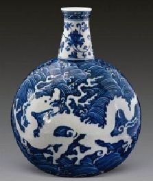 明宣德 青花海水白龙纹扁瓶 资料图片