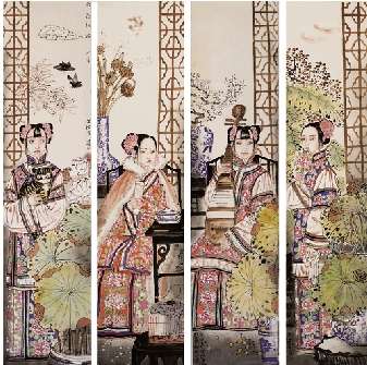金增友 南窗物语——四季 136×35cm×4