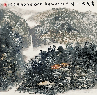 宋宗清 雾锁深山听钟鸣 68×68cm