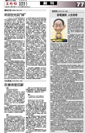 1997年8月16日,北京正热的时候,我去见了老画家田世光先生。他的家在他名之曰“柳浪庄”的六郎庄,一条小胡同,七拐八弯,很不好找。进大门,门楼、黑漆木门,两扇,厚重,给人很结实的感觉。从门外往进看,院子似乎很深,枣树高大茁壮,阳骄荫浓,覆盖了宽阔的院子,不仰头就能看见树上的枣黄亮黄亮的,嗦哩嗦罗,结得很繁,有些已经泛红。进门,迎面是一道矮墙,只是矮于外墙,墙根一排花盆,高低错落,玉簪翠绿地生长着。左趋,又是一道门,较大门窄细,进去,是阔大的院子,似乎凹着,四周的房子却高,迎门是更高耸的台阶,台阶上面一围平房。刚上台阶,一个老人迎出来,背头,头发斑白浓密,浓眉,方面,面色红润,精神健朗,戴眼镜,手拄拐杖,腿似有些颤。这就是田世光了。