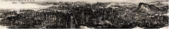 胡文 刘泽荣 魏兴无 陈建坤 艾君 陶小平 张国琳(主持) 印象合肥 城市水墨画 220×1400cm 2011年
