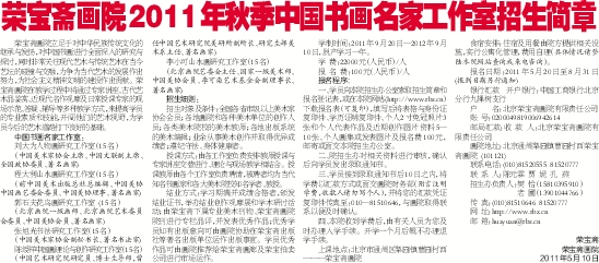 荣宝斋画院2011年秋季中国书画名家工作室招生简章