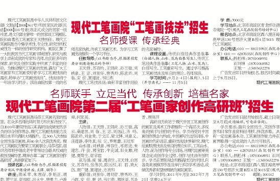 现代工笔画院是培养工笔画名家的摇篮。在众多名师的共同努力和无私传授下,自2010年暑假开班以来高研班成绩斐然,学员的综合创作理念、现代工笔画技法能力及理论水平均得到大幅提升。近300人次参加全国性各项画展,有60余人次获优秀奖。现代工笔画院为繁荣工笔画事业、培养名家,组织名师联手组成老中青相结合最具权威的教授及辅导团,现举办第二届“工笔画家创作高研班”,具体事宜如下: