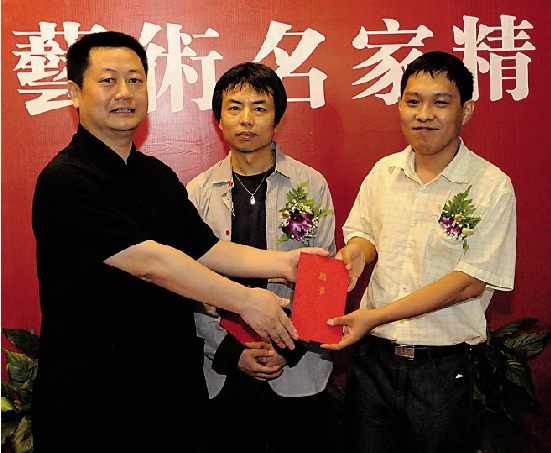 苏州画院院长沈威峰向油画家吴静涵先生、林大陆先生颁发苏州画院画家聘书