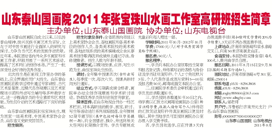 山东泰山国画院2011年张宝珠山水画工作室高研班招生简章
