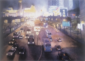 吴智明(上海) 璀璨上海夜 水彩画