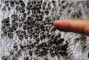 | 台湾艺术家自创 台湾艺术家陈浚豪自创的“蚊钉画”作品9月将赴上海展出。陈浚豪以木工装修材料蚊钉为“笔”临摹古代名家书画作品,在灯光照射下,作品上疏密、长短不一的不锈钢蚊钉及所形成的阴影呈现出接近水墨画的效果。(下图为陈浚豪“蚊钉画”作品的细节。) 吴景腾 摄 |