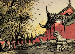 丁正献 南屏晚钟 水印木刻 24.5×35cm 1963年
