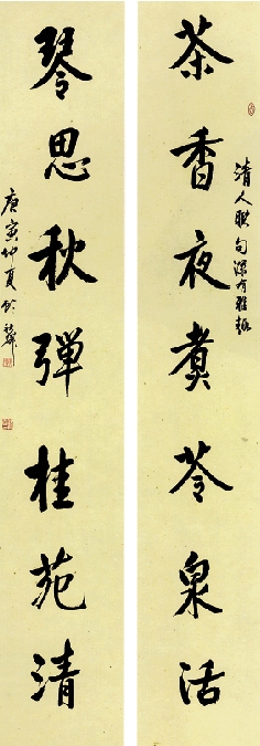 顾秋麟 茶香琴思六尺对联 180×33cm×2