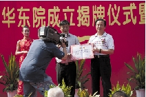 中国美术院执行院长兼秘书长王亚飞向著名企业家赵忠祥先生颁发中囯美术院华东院院长兼秘书长聘书。