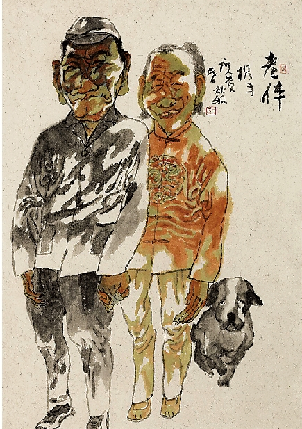 周矩敏 老伴 携手度黄昏 98×69cm 2009年