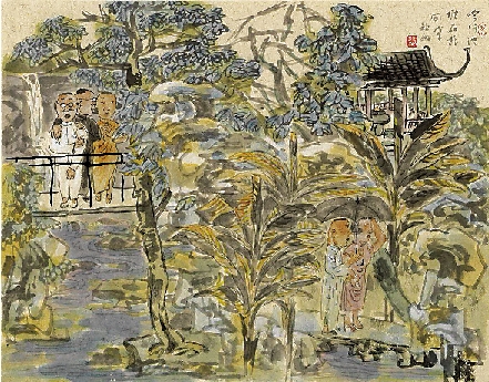 周矩敏 呤行池塘石桥间 50×66cm 2008年
