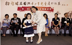 全国人大常委、香港基本法委员会副主任梁爱诗女士为幼儿组冠军余之之颁奖