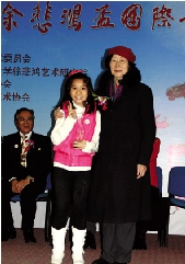 徐悲鸿纪念馆馆长廖静文为万希玄同学颁发初小组冠军奖